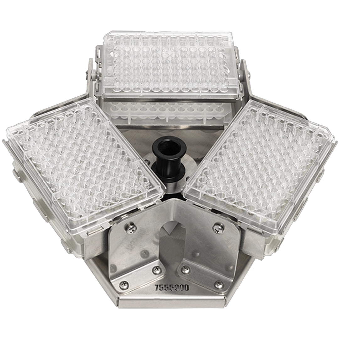 Fasst bis zu 6 Standard-Mikrotiterplatten oder 3 Deep-Well-Mikrotiterplatten.